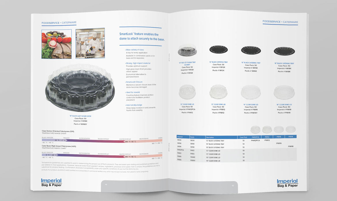 Marketing support across advertisements, collateral, and point-of-sale materials. Deliverables include graphic design, illustration, retouching, project management, and copy for Pactiv and partner brands including Sysco, Gordon Food Service, Buffalo Wild Wings, and Edward Don & Company.